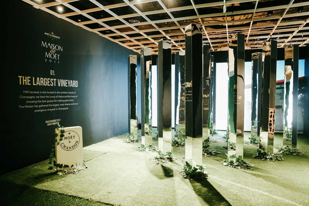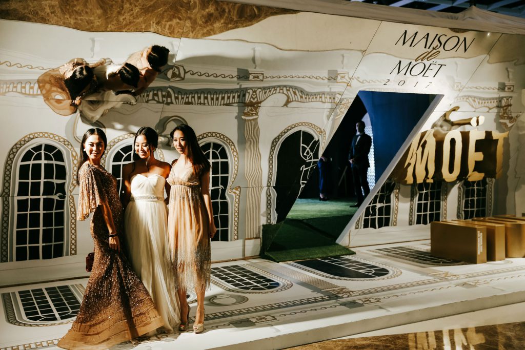 Moet & Chandon invited 300 beautiful guests to go on a glamorous journey of heritage, glitz and celebration. To provide the ultimate experience, a 10,000sqm exhibition space was transformed into a luxurious venue consisting of three main areas; The Birth, The Celebration Room and Open The Now.